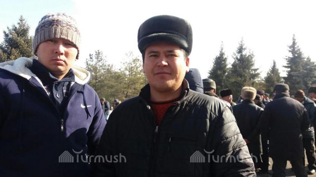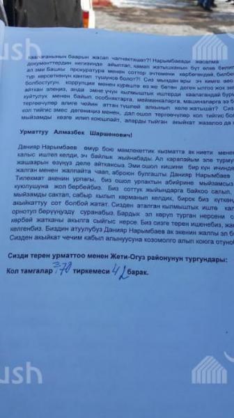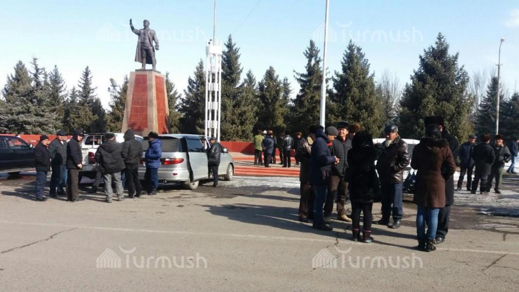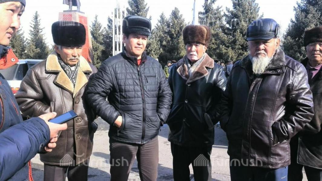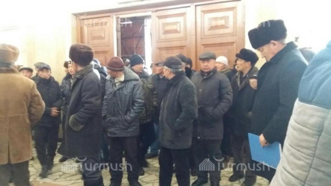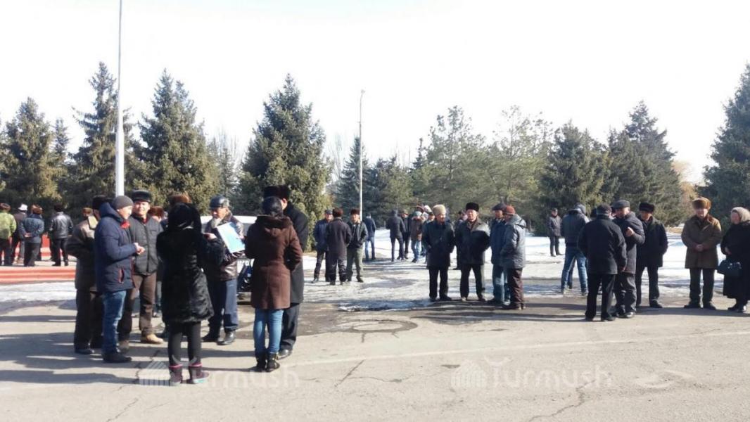 Фото — Жители Джети-Огуза пришли в здание полпредства, чтобы передать письмо президенту по Д.Нарымбаеву