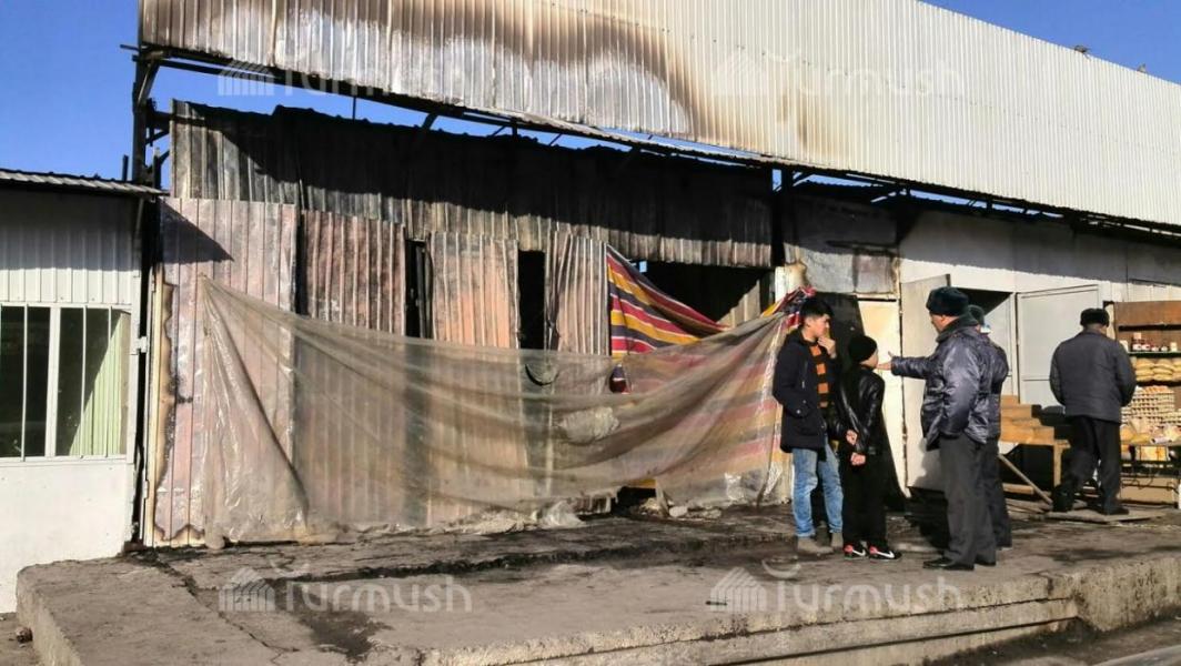 В Оше сгорели два торговых павильона, один из владельцев потерял товар на $3000 (фото)