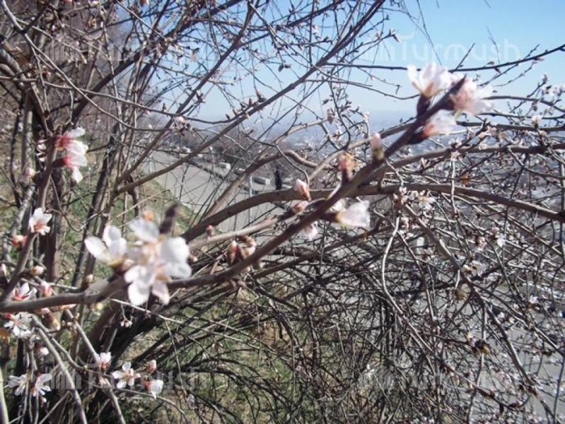 Фото — В Оше на горе Сулейман-Тоо расцвели деревья миндаля