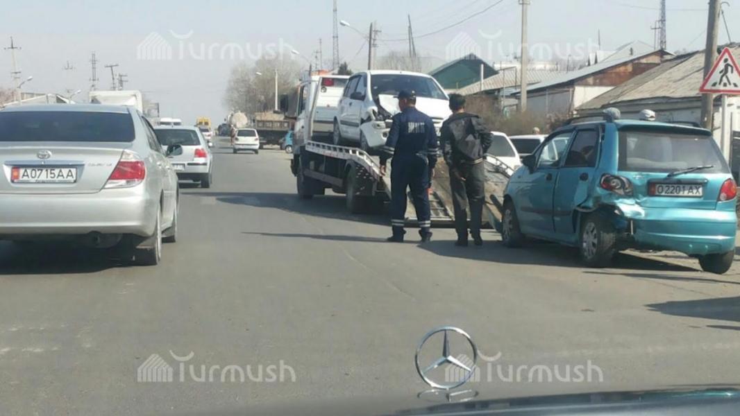 В Оше столкнулись два автомобиля, один из которых перевернулся (фото)