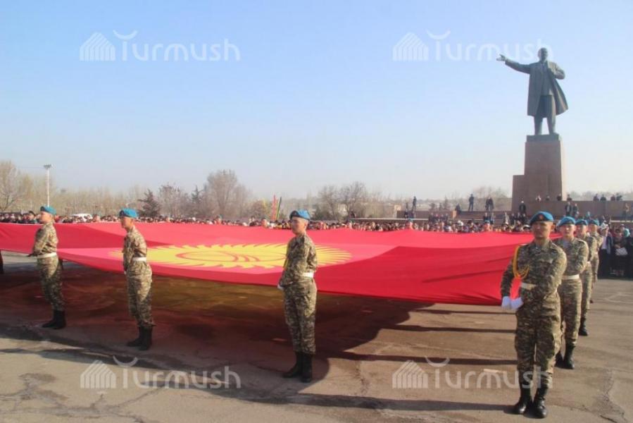 Фото – В Оше в День госфлага на площадь внесли флаг длиной 15 метров и шириной 10 метров