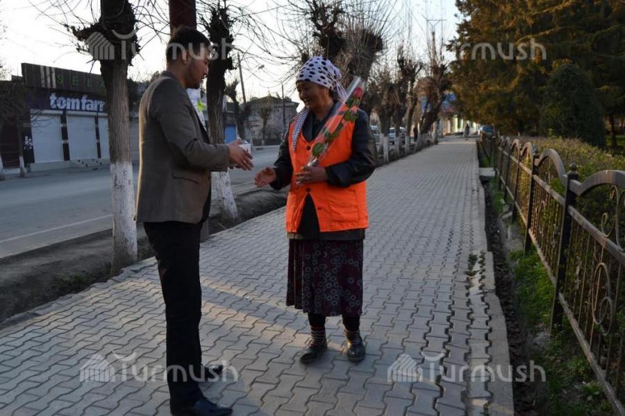 Фото — В Оше женщин-дворников, работавших в выходной день, поздравили с 8 марта