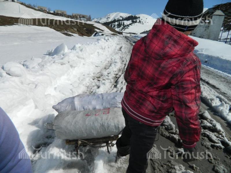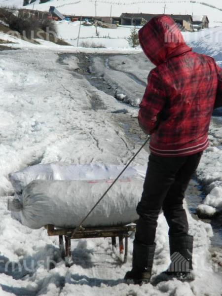 Фото — Каждую неделю школьники из села Шахты-Джыргалан Иссык-Куля на санках привозят уголь домой из шахт