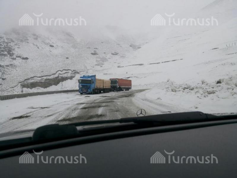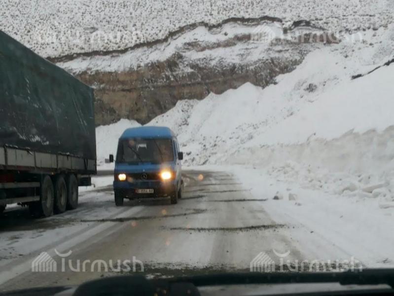 Фото — Ситуация на дороге Бишкек-Ош: на перевале Тёо-Ашуу и Ала-Бель снег