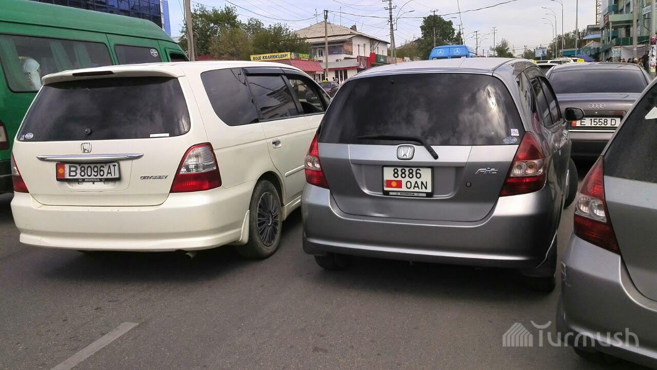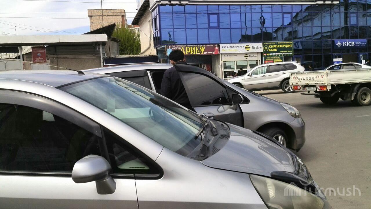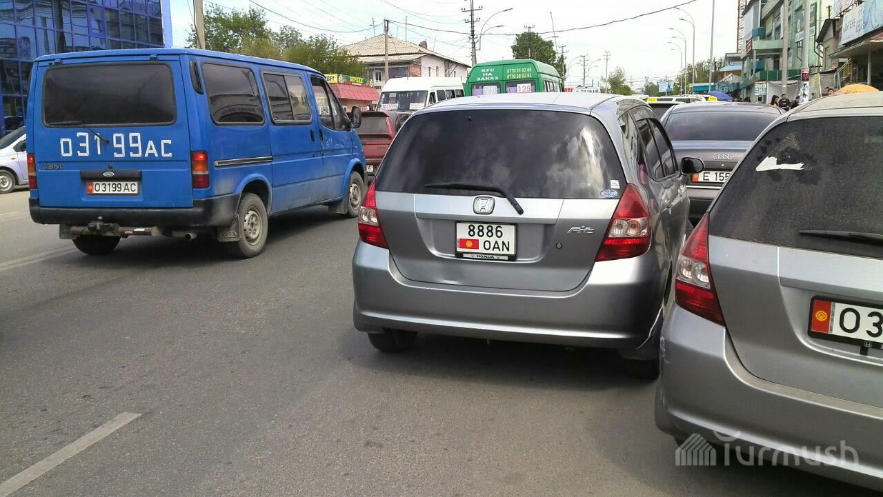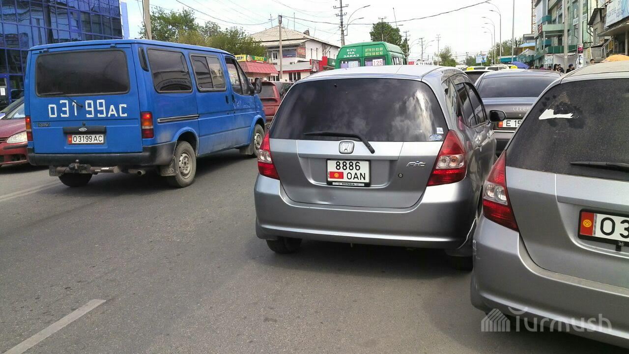 В Оше неправильно припаркованный тонированный автомобиль, водитель которого зашел в здание милиции, стал причиной пробки (фото)
