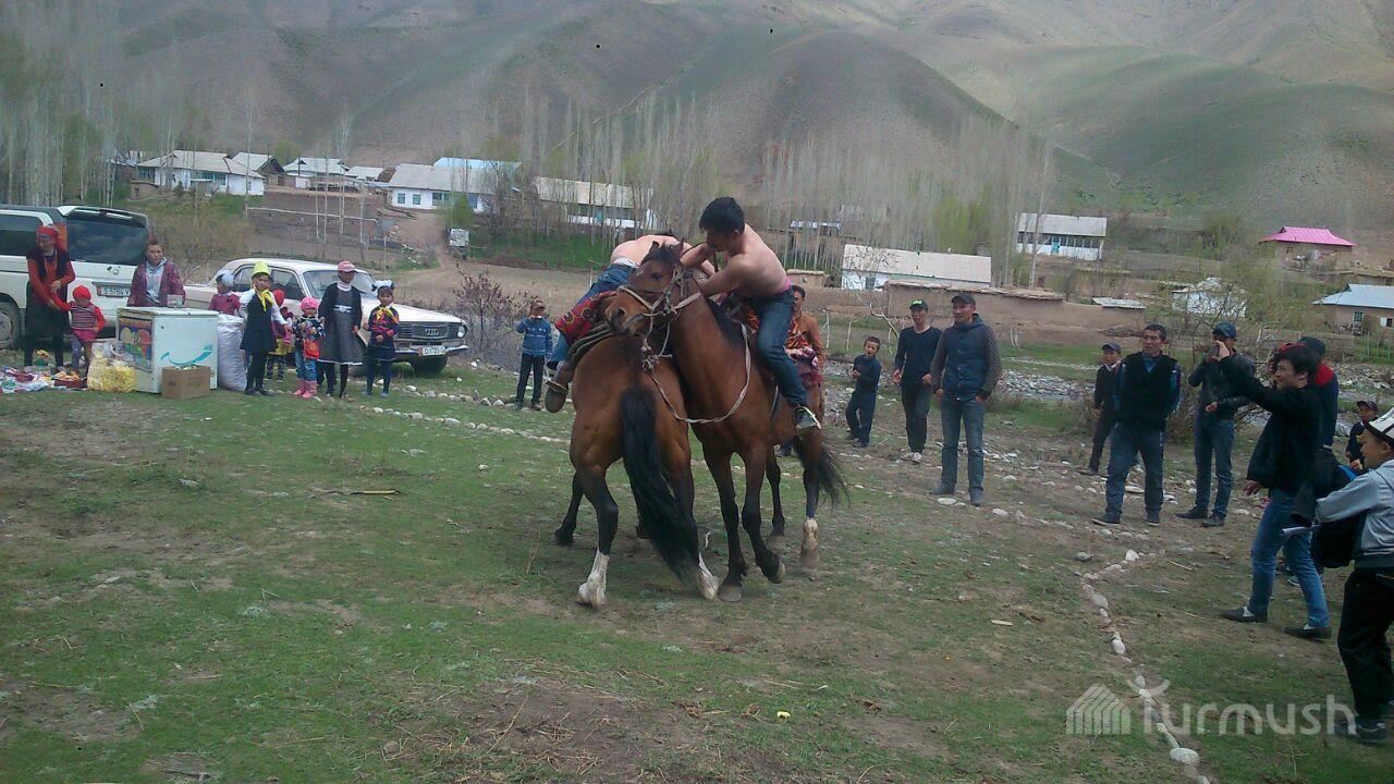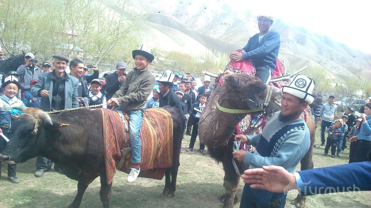 Фото — В Чон-Алае проходят народные гуляния: «кыз куумай», обрезание, катание на быках и верблюдах