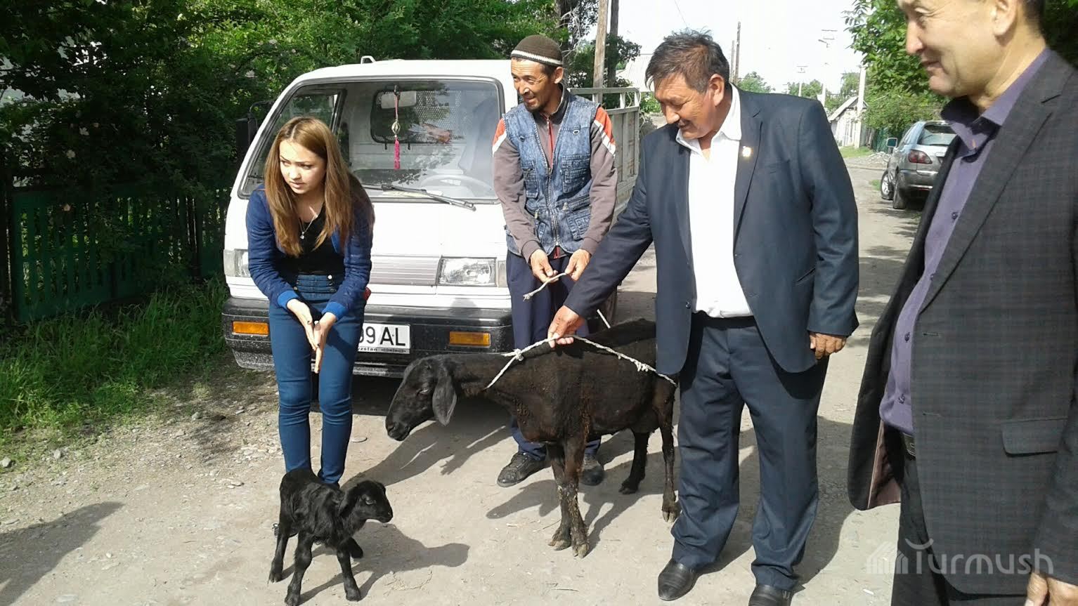 В Жайылском районе ветерану войны П.Докалюку подарили овцу с ягненком (фото)