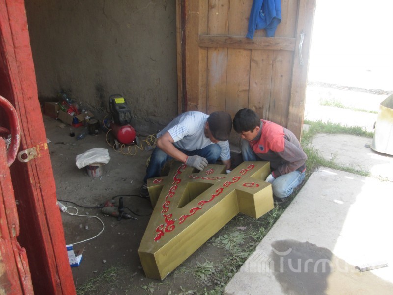 Представители молодежи Ат-Баши обновили надпись у въезда в район (фото)