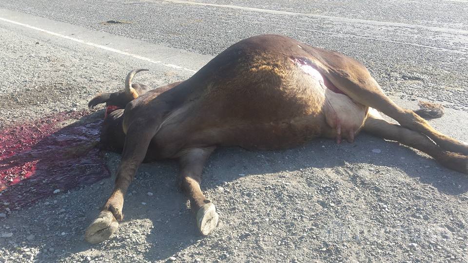 На дороге, ведущей в Чон-Алай, лежат туши сбитых двух коров (фото)
