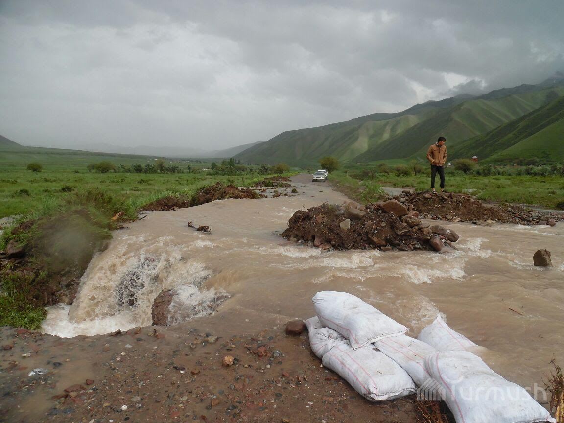 В Нарынском районе вышедшая из берегов река затопила дорогу, на помощь населению пришли всадники на лошадях (фото)