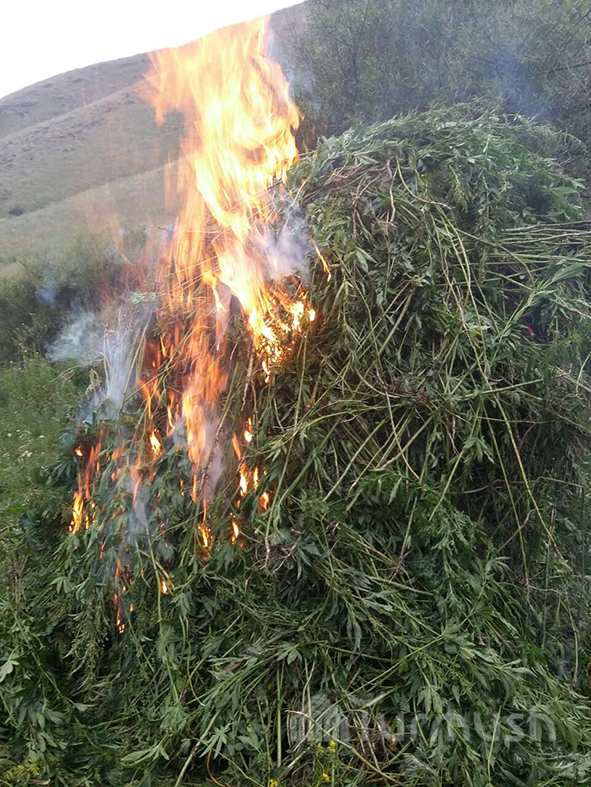 В ущелье Эргул-Сай Таласского района уничтожили коноплю, собранную с 50 соток (фото)
