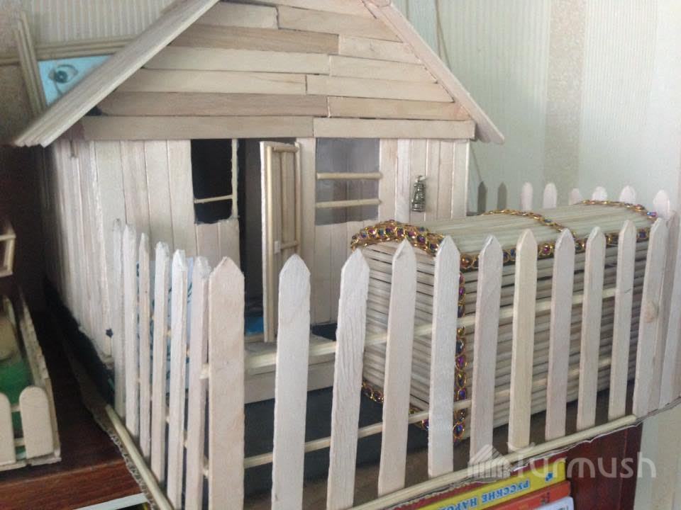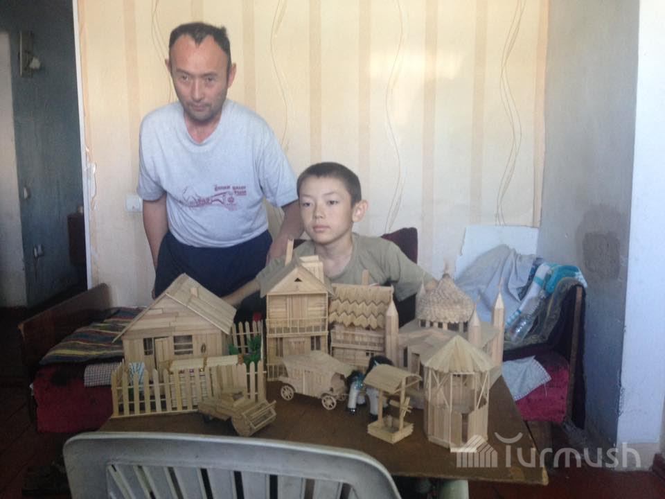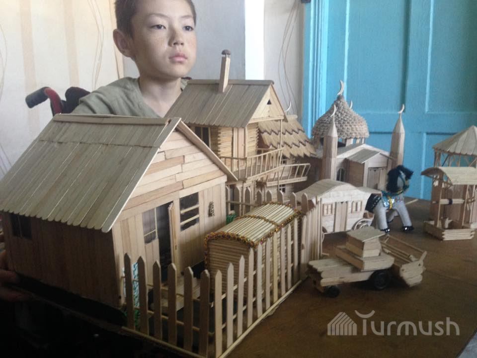 Молодые таланты: В Токмоке 12-летний Тилек после страшной аварии начал делать макеты домов и мечетей из палочек от мороженого (фото)