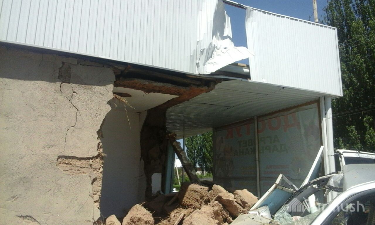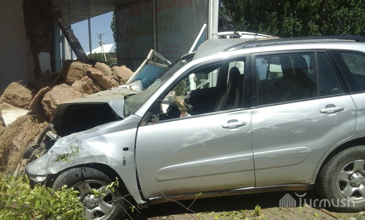 Пытаясь избежать столкновения, водитель внедорожника из Таласа влетел в жилой дом (фото)