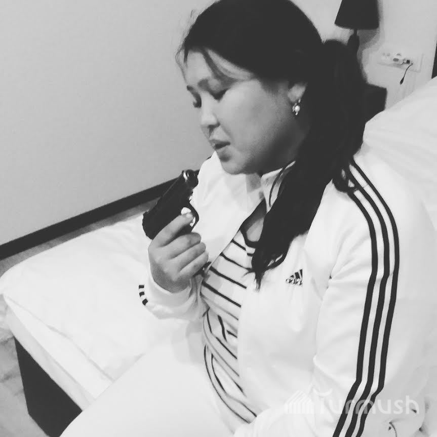 Фотосессия девушки-следователя УВД с боевым пистолетом на Иссык-Куле (дополнено)