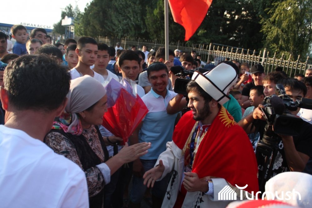 В Оше в торжественной обстановке встретили серебряного призера Чемпионата мира по спортивной борьбе среди юниоров Х.Парпиева (фото)