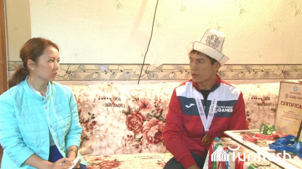 Бекзат из Таласа завоевал золото на II Всемирных играх кочевников по кыргыз курошу (фото)