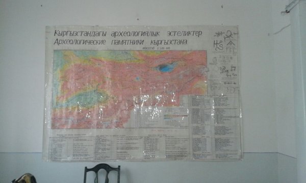 В Оше Ж.Апиев на карте Кыргызстана вручную обозначил местоположение историко-археологических памятников (фото)