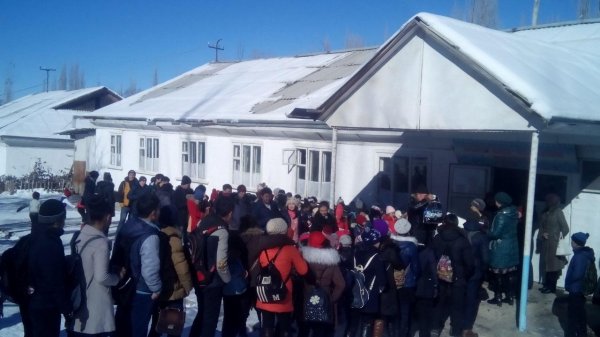 В селе Сай Баткенского района не могут достроить новое здание школы, из-за чего дети учатся в три смены и греются у контрамарки (фото)