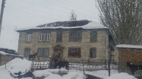 В селе Мин-Куш Жумгальского района под тяжестью снега обвалилась крыша 2-этажного дома (фото)