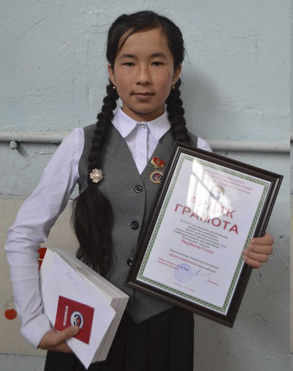 Ученицу из села Эмгекчил Нарынского района, занявшую 2 место на республиканской олимпиаде, наградили Почетной грамотой и планшетом (фото)