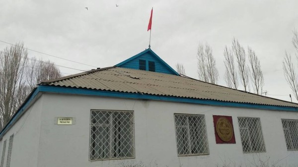 В Ат-Баши заменили флаг на здании районного суда, который порвался из-за сильного дождя и ветра (фото)