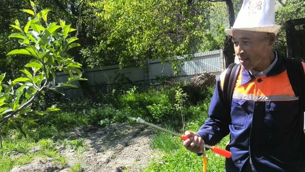 Жизнь в регионах: И.Калыбеков из Лейлека зарабатывает на опрыскивании фруктовых садов (фото)
