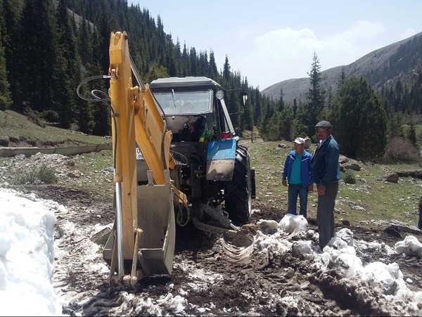 В Ак-Талинском районе от сошедшей снежной лавины очищена дорога, ведущая на жайлоо Ат-Кулак (фото)