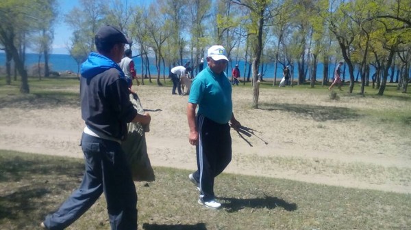 В селе Саруу Джети-Огузском районе очистили берега озера Иссык-Куль (фото)