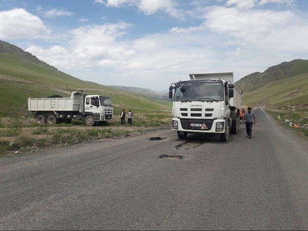 Фото – На перевале Отмок проводится ямочный ремонт дороги