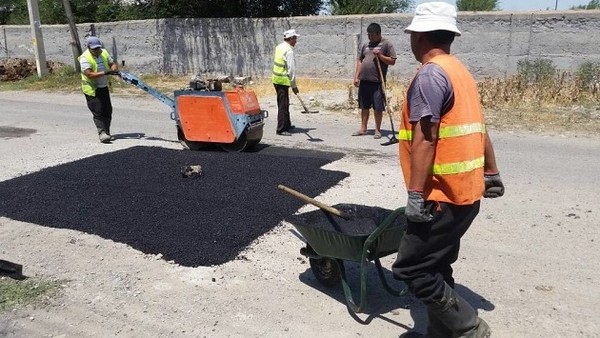 В городе Токмок провели ямочный ремонт дорог (фото)