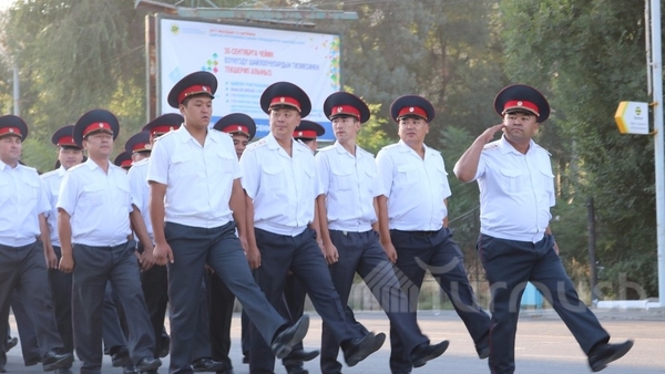 В Жалал-Абаде прошел гарнизонный развод милиции в честь 26-летия независимости КР, Курбан Айта и начала нового учебного года (фото)