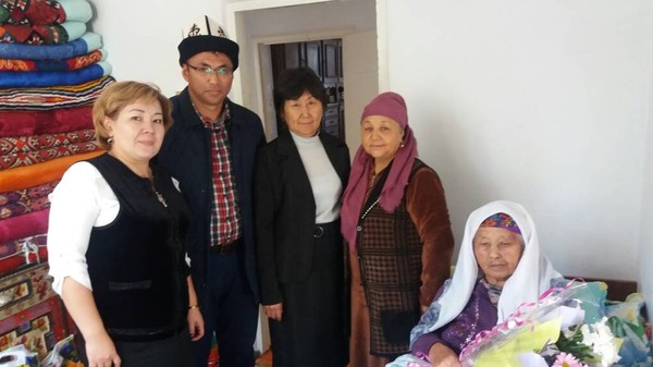 В Аламединском районе 3 людям, прожившим более века, передали по 10 тыс. сомов