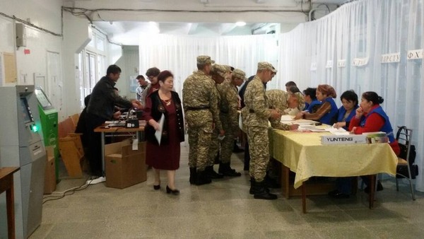 На избирательном участке №2212 города Майлуу-Суу голосуют военнослужащие (фото)