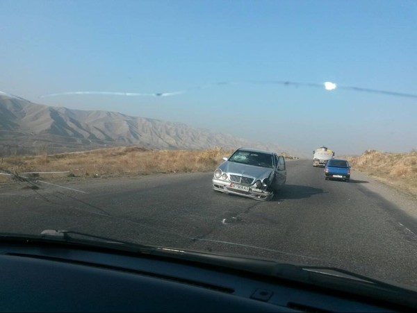 На участие дороги Бишкек—Ош произошло ДТП с участием двух автомобилей