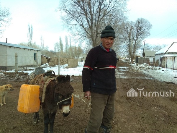 Жизнь в регионах: Б.Калчаев в зимнюю стужу и осеннюю слякоть проходит 600 метров и привозит воду на единственном осле для бани, где моются жители всего села Кара-Чий (фото, видео)