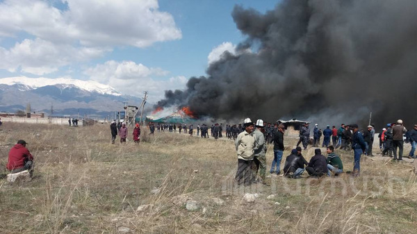 Фото — В Тогуз-Торо митингующие подожгли здания золотоизвлекательной компании «Джи Эл Макмал Девелопинг»