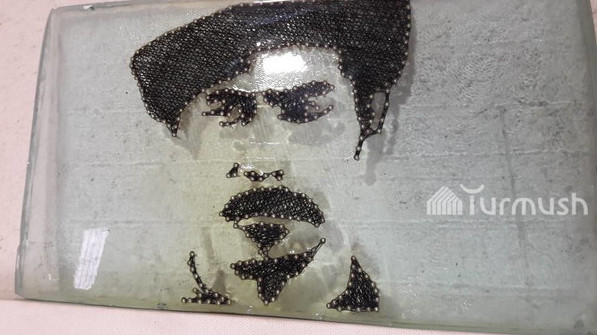 Фото — Необычный портрет Сүймөнкула Чокморова из стекла, гвоздей и ниток