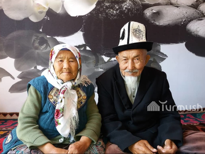 Жубайлар: Урумкан апа и Кален ата из Ат-Башы, поженившиеся 67 лет назад, имеют 12 детей, 69 внуков, 72 правнуков и 2 праправнука (фото)