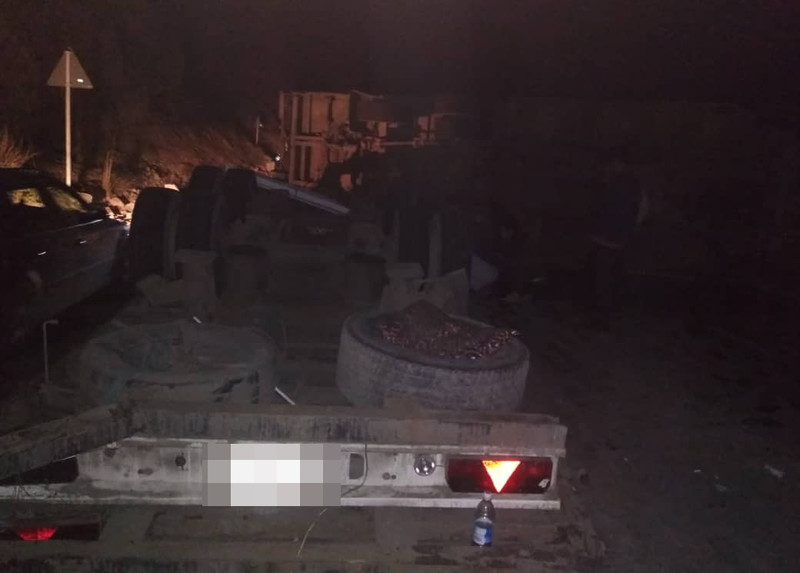 На автодороге Бишкек—Ош перевернулся грузовик, водитель доставлен в больницу