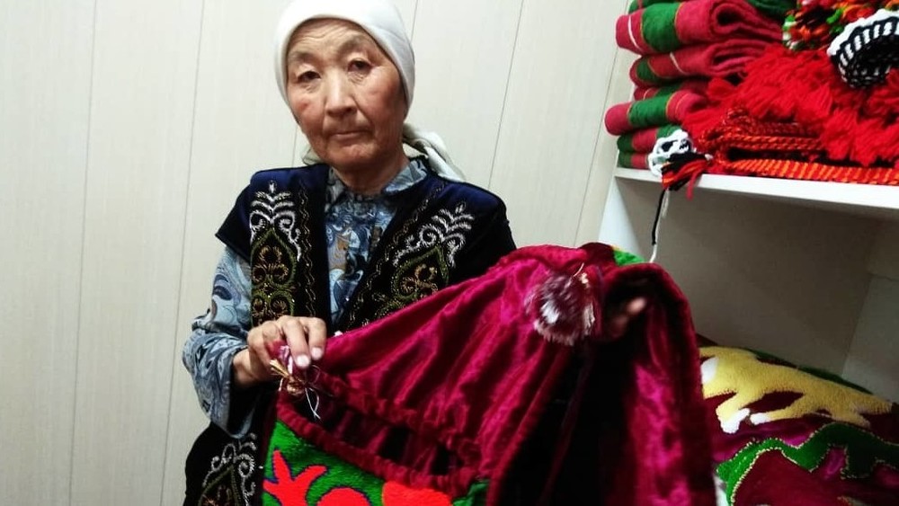 Жизнь в регионах: Ш.Желденова из Джети-Огуза хранит туш кийиз, сделанный 200 лет назад. Фото