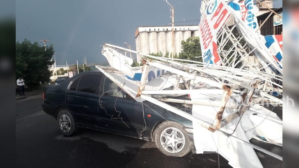 В Жалал-Абаде из-за сильного ветра на проезжающий мимо автомобиль упал рекламный щит