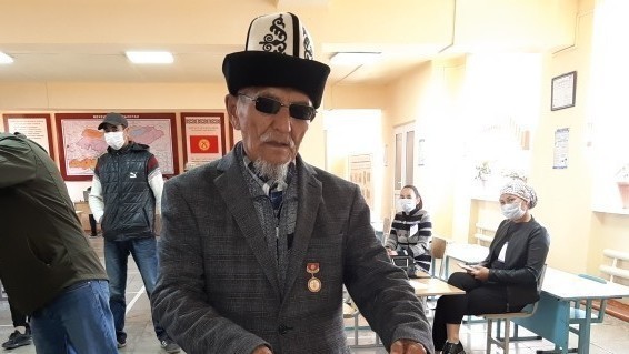 Пришел отдать свой голос с большой надеждой — самый пожилой избиратель Ат-Башинского района Ж.Жумаев
