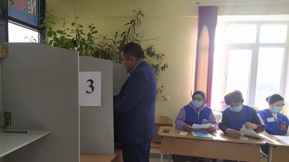Turmush — Полномочный представитель правительства в Нарынской области Сабыркул Ашимбаев проголосовал в городе Нарын.