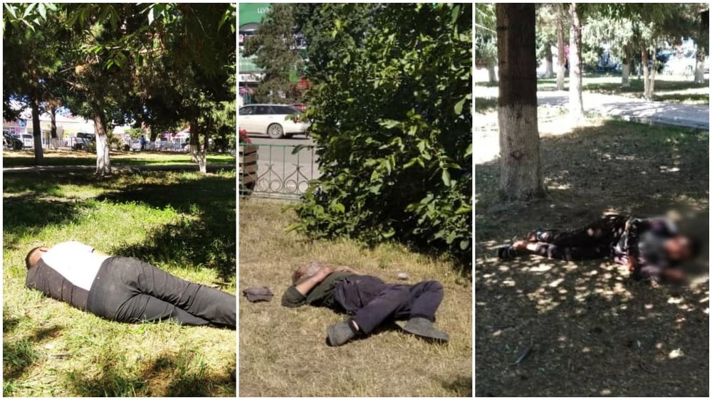 Пьяные горожане в центре Каракола. Фото