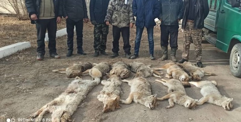 На Иссык-Куле более сорока охотников загнали 10 шакалов. Видео
