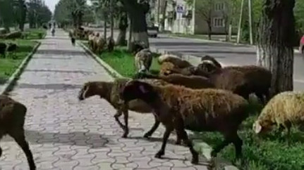 На центральной улице города Токмок пасутся овцы. Видео
