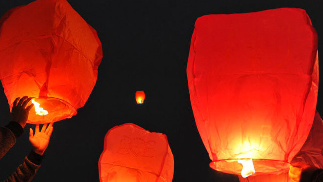 В городе Баткен в небо запустили 77 китайских фонариков
