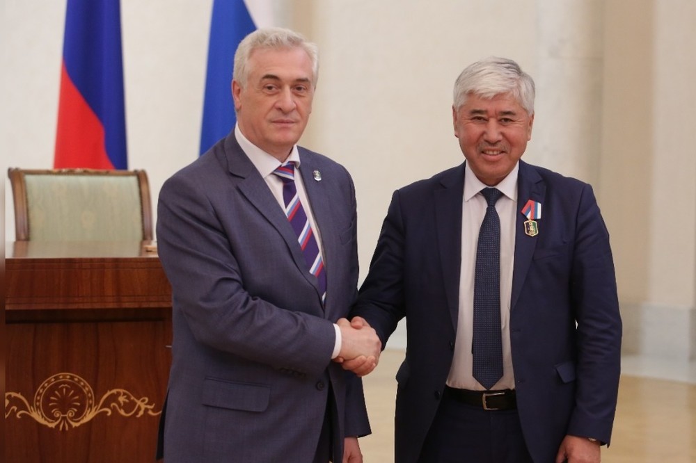 В рамках совета ректоров ректор УрГЭУ Яков Силин вручил медаль УрГЭУ «За вклад в ЕЭФМ» к.т.н., проректору по внешним связям и развитию ОшТУ Урмату Аттокурову.