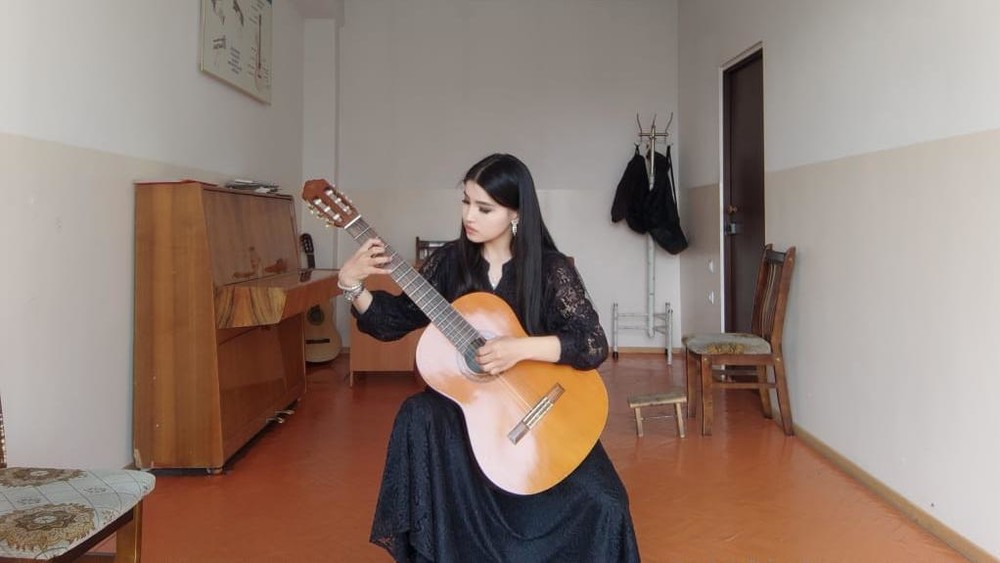Молодые таланты: Студентка с необычным именем из Каракола играет на струнном инструменте, который ассоциируют с фигурой девушек