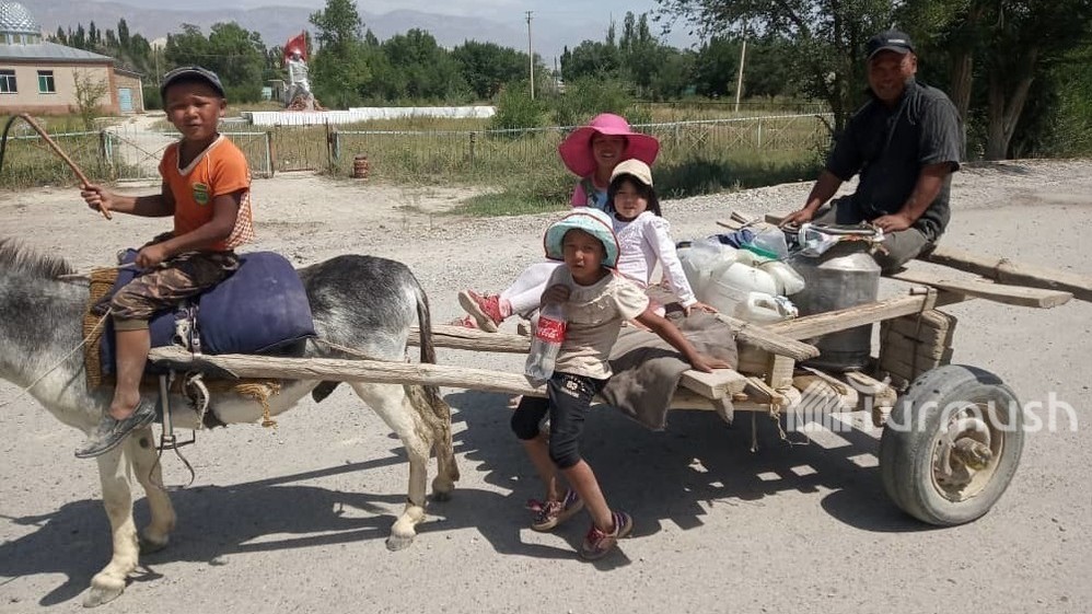 Фото — Жители села Тоголок Молдо вынуждены привозить воду на повозках, запряженных ослами
